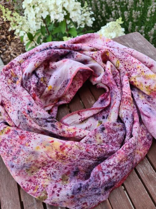 As our dyed scarves are not mass-produced, each piece is unique and may differ from the photo due to the colour depth, arrangement of the appliqués.