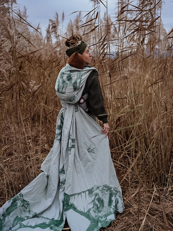 Chaque taille de porte-bébé est unique. Les tailles n’ont pas été créées dans l’atelier de couture, mais déjà sur le métier à tisser. Normalement, le tissu des écharpes jacquard est un modèle sans fin, qui est simplement coupé à la taille finale et cousu ensemble.